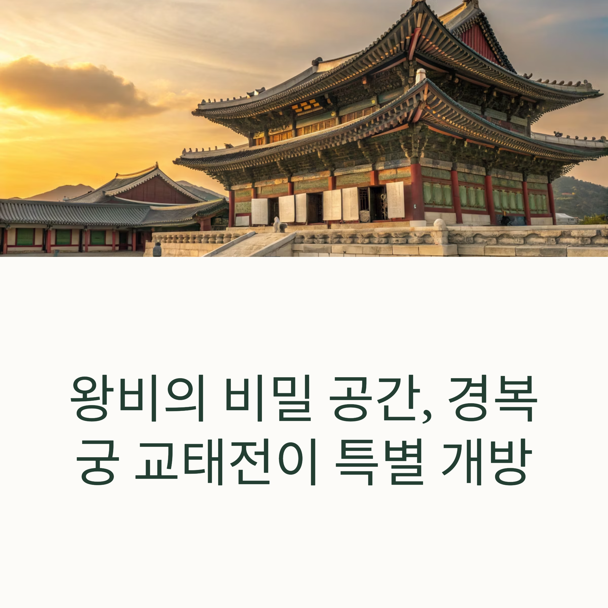 경복궁 교태전의 개방은 단순한 관광이 아니라 과거와 현재가 만나는 특별한 시간입니다. 조선 왕조의 중심을 이루던 이 공간에서 왕비의 삶을 상상하며 역사 속 한 장면을 체험해보세요. 문화재를 보호하면서도 국민과 공유하고자 하는 이번 기획은 우리 문화유산의 미래를 위한 의미 있는 첫걸음입니다. 한정된 기회를 놓치지 마시고 꼭 참여해보시길 바랍니다.