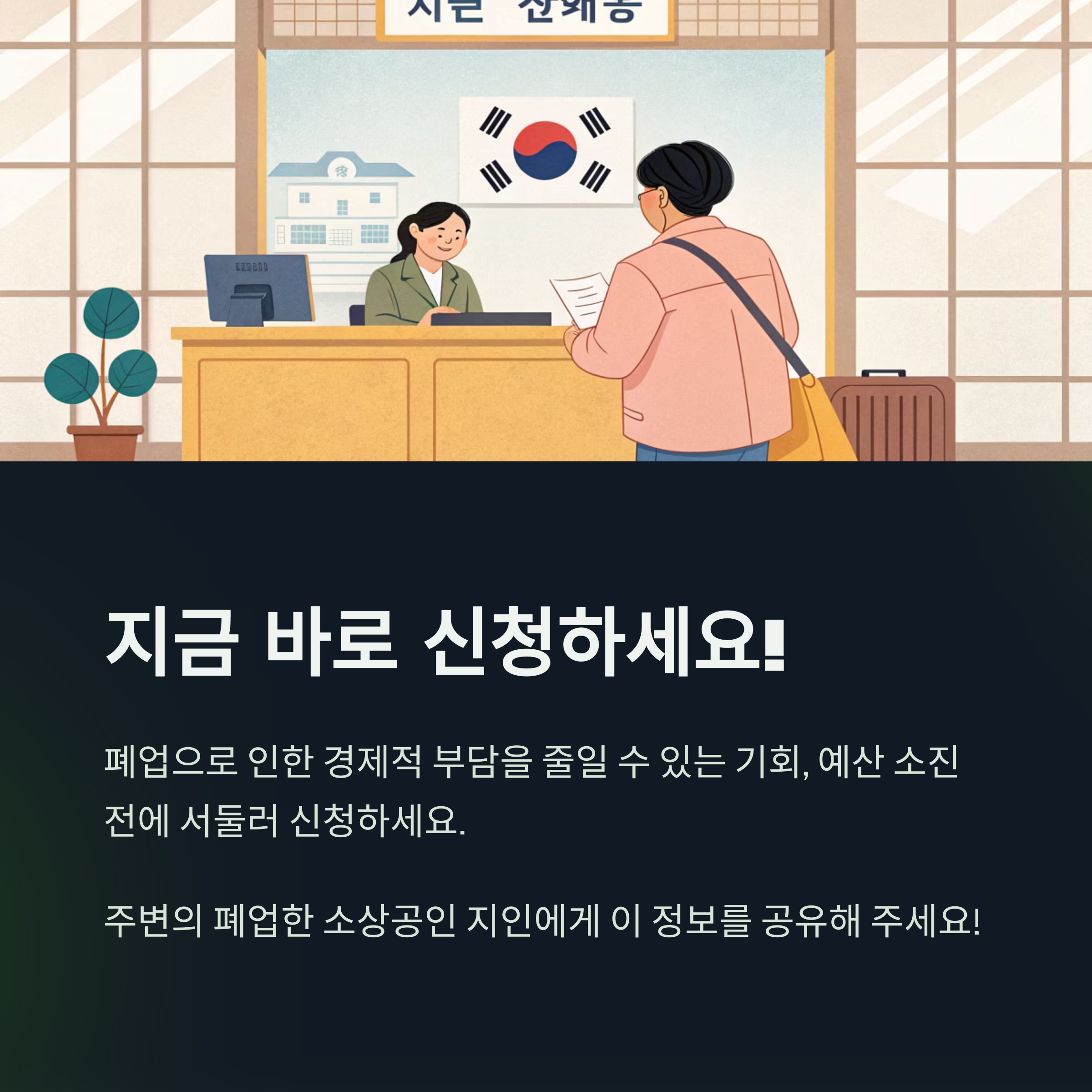 * 든든한 심리 지원: 폐업으로 인한 심리적 어려움을 극복하도록 전문가 상담을 제공합니다.