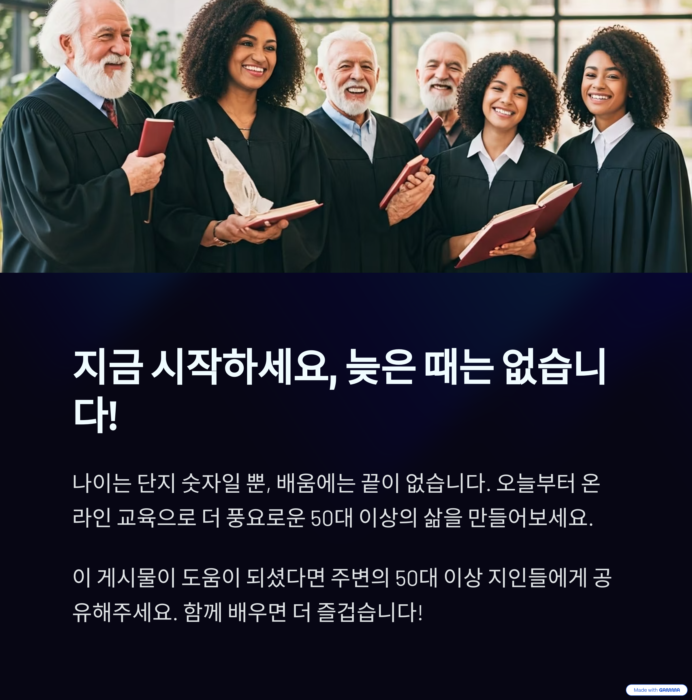 "나이는 숫자일 뿐, 배움은 평생 간다"는 말처럼 50대 이후야말로 배움이 가장 빛나는 시기일 수 있습니다.