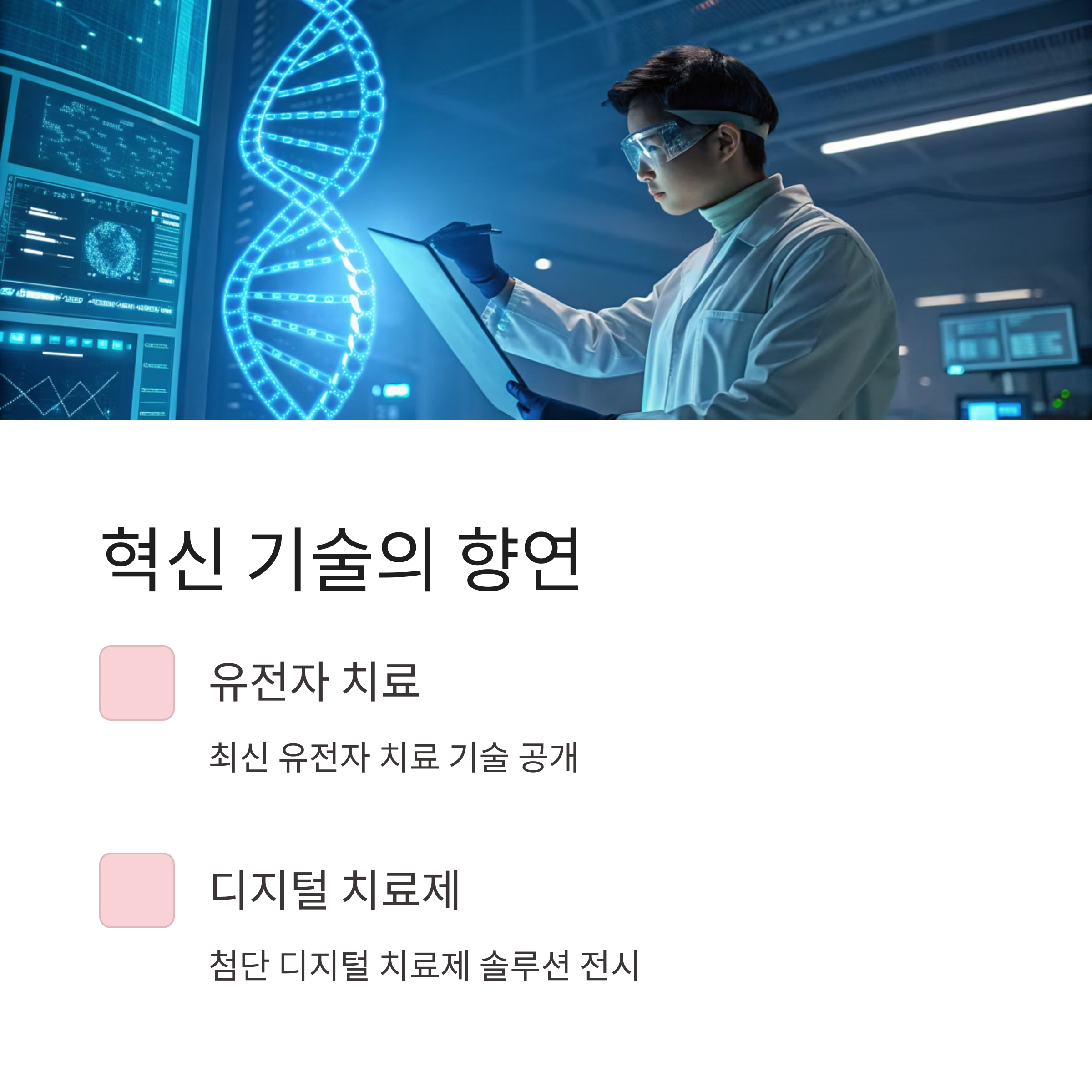 특히 이번 전시에서는 바이오 시뮬레이션 기술, 유전체 분석 플랫폼, 그리고 디지털 치료제와 같은 혁신 기술들이 공개되어 큰 주목을 받았습니다.