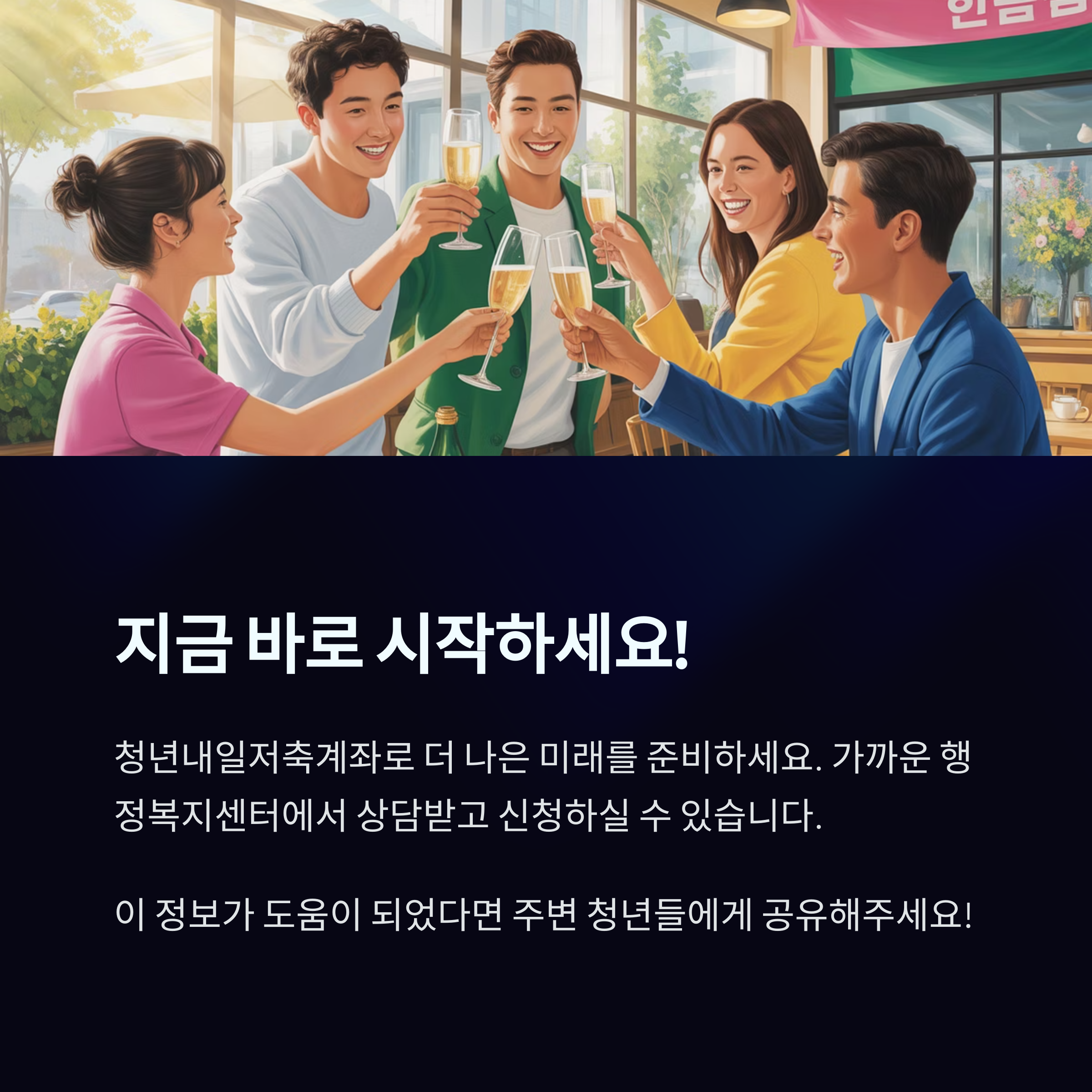 청년내일저축계좌는 단순한 저축 제도가 아닙니다. 청년들이 자립할 수 있도록 도와주는 소중한 정책입니다. 오프라인 신청을 통해 더 많은 분들이 정부의 도움을 실질적으로 체감하길 바랍니다.