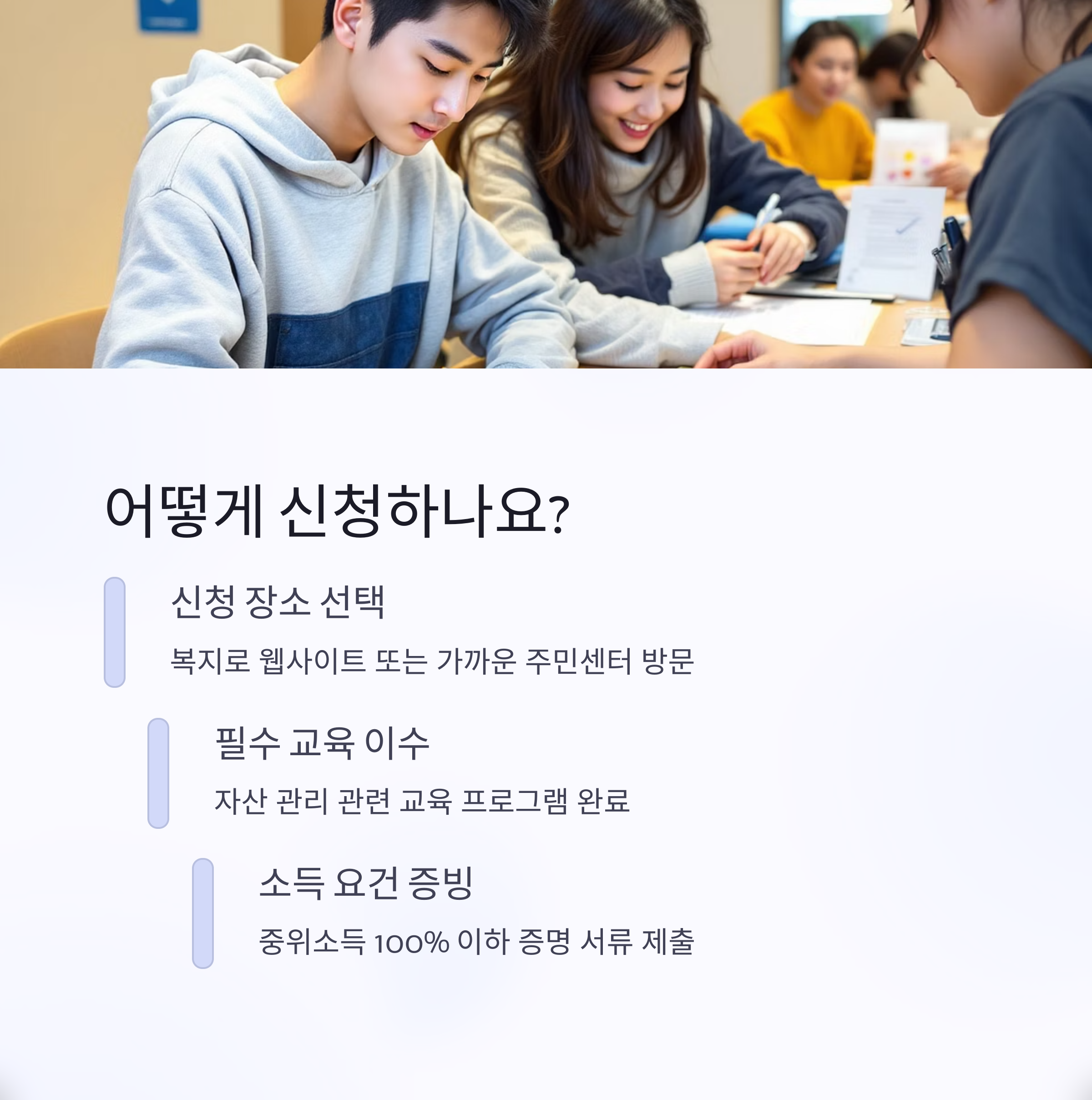 신청 전 본인의 소득·재산을 미리 확인하는 것이 중요하며, 사회보장정보시스템 등을 통해 사전 자가진단을 하는 것이 좋습니다. 신청은 복지로 또는 주민센터에서 진행할 수 있으며, 제출 서류와 교육 이수는 필수이니 미리 준비가 필요합니다.