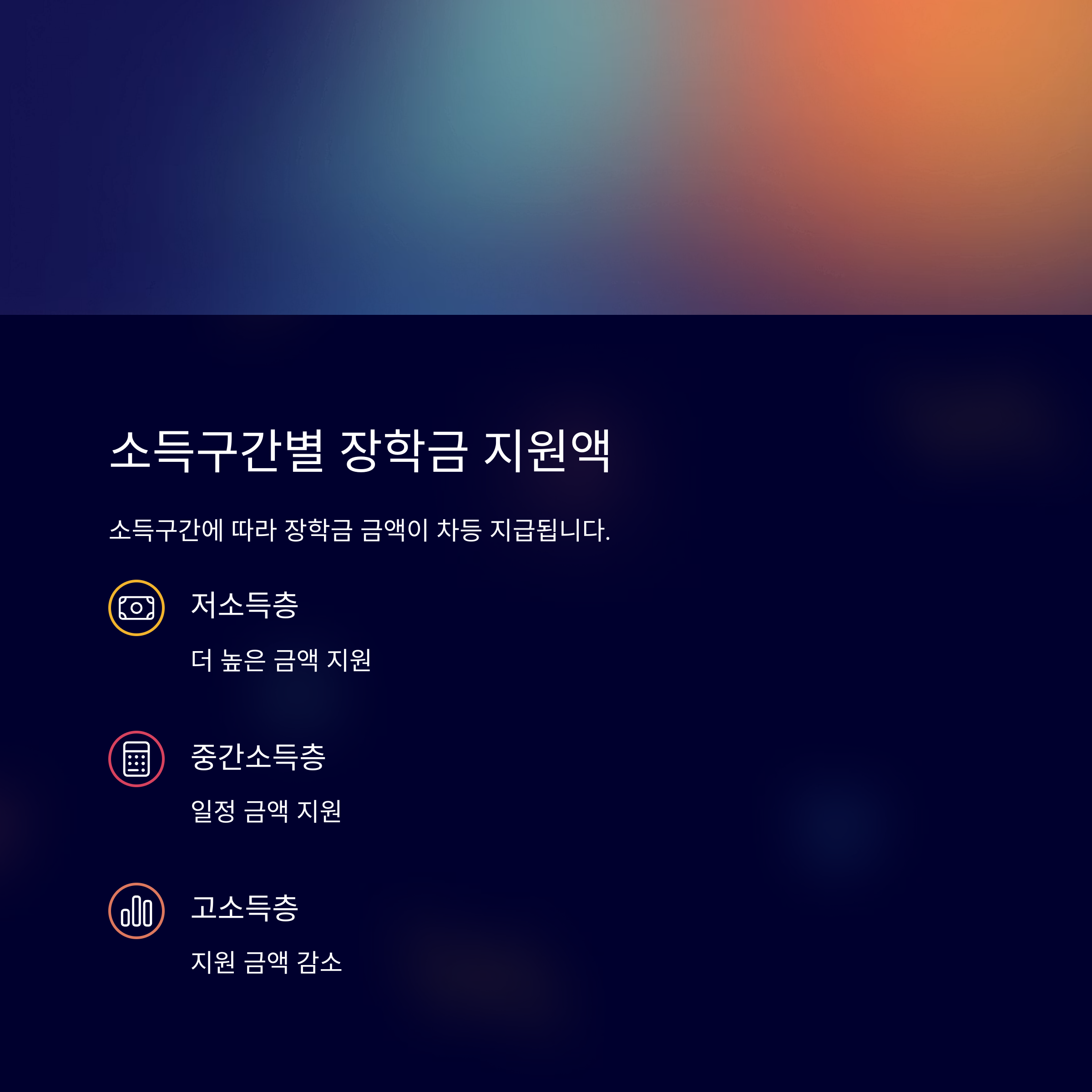 국가장학금은 소득구간에 따라 지원 금액이 상이합니다.