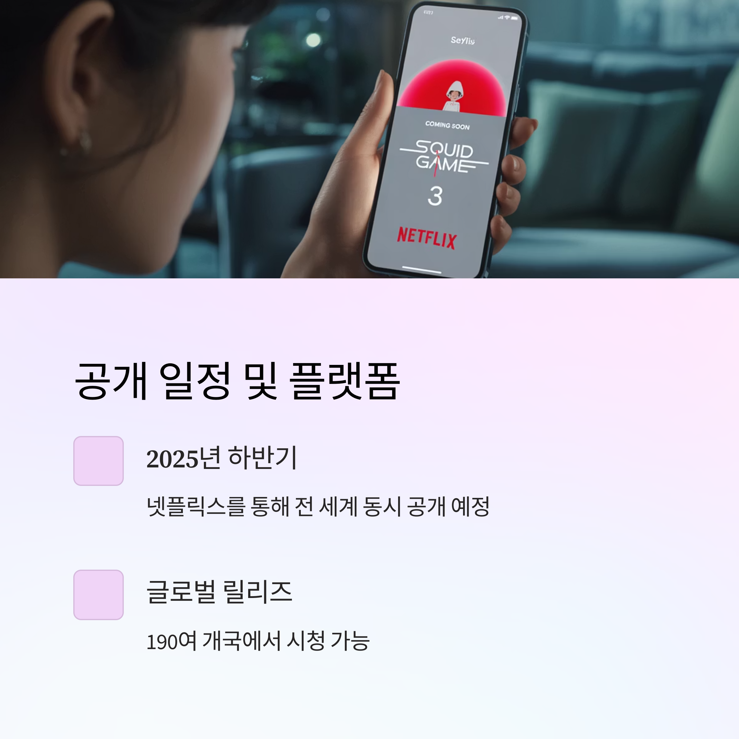 시청자 여러분의 기대에 부응할 수 있는 완성도 높은 콘텐츠로 찾아올 오징어게임 시즌3, 꼭 주목해 보시길 바랍니다.