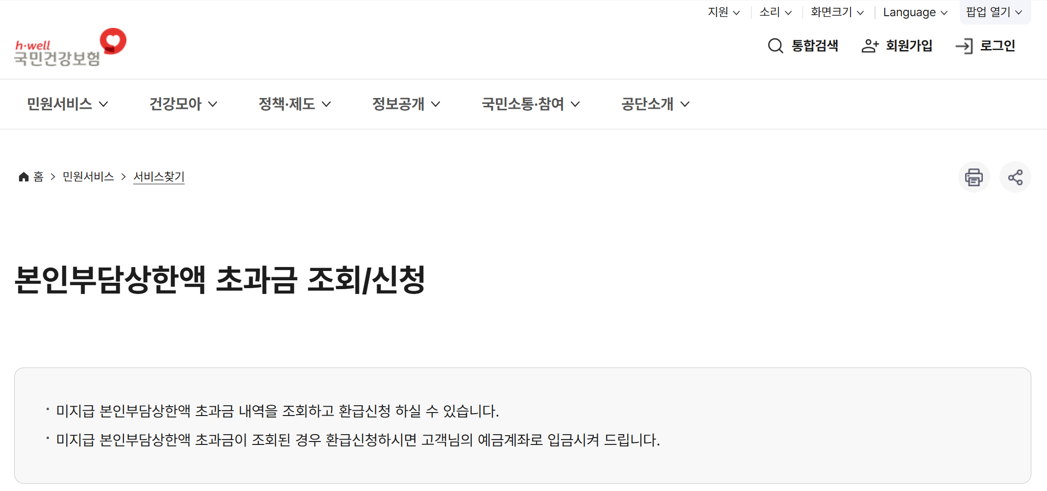 특히 병원 이용이 잦거나 큰 수술, 입원 치료 등을 받으셨던 분들은 건강보험공단 홈페이지에 방문해 꼭 한 번 본인의 초과금 여부를 조회해보시길 권장합니다.
