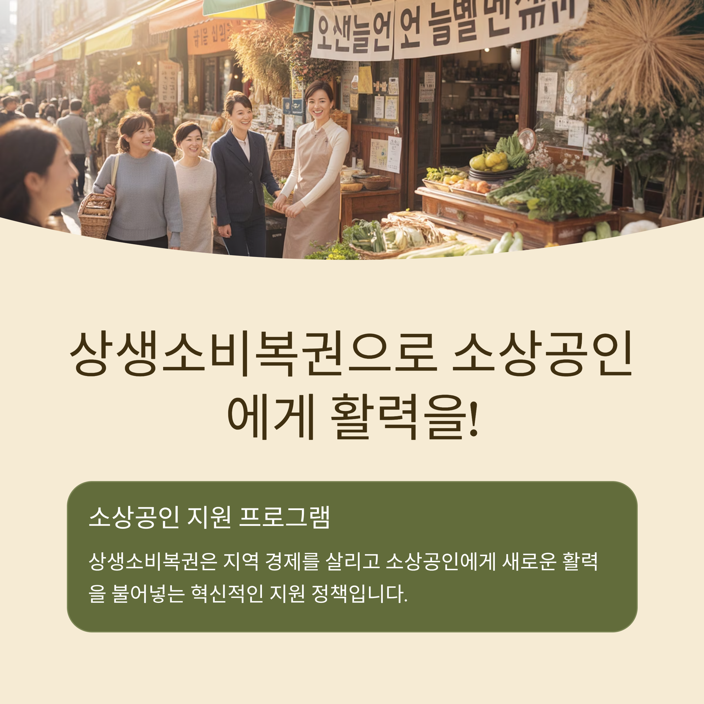 여러분의 작은 관심과 참여가 소상공인들에게 큰 힘이 될 수 있습니다. 함께 상생하는 따뜻한 경제 공동체를 만들어 갑시다!