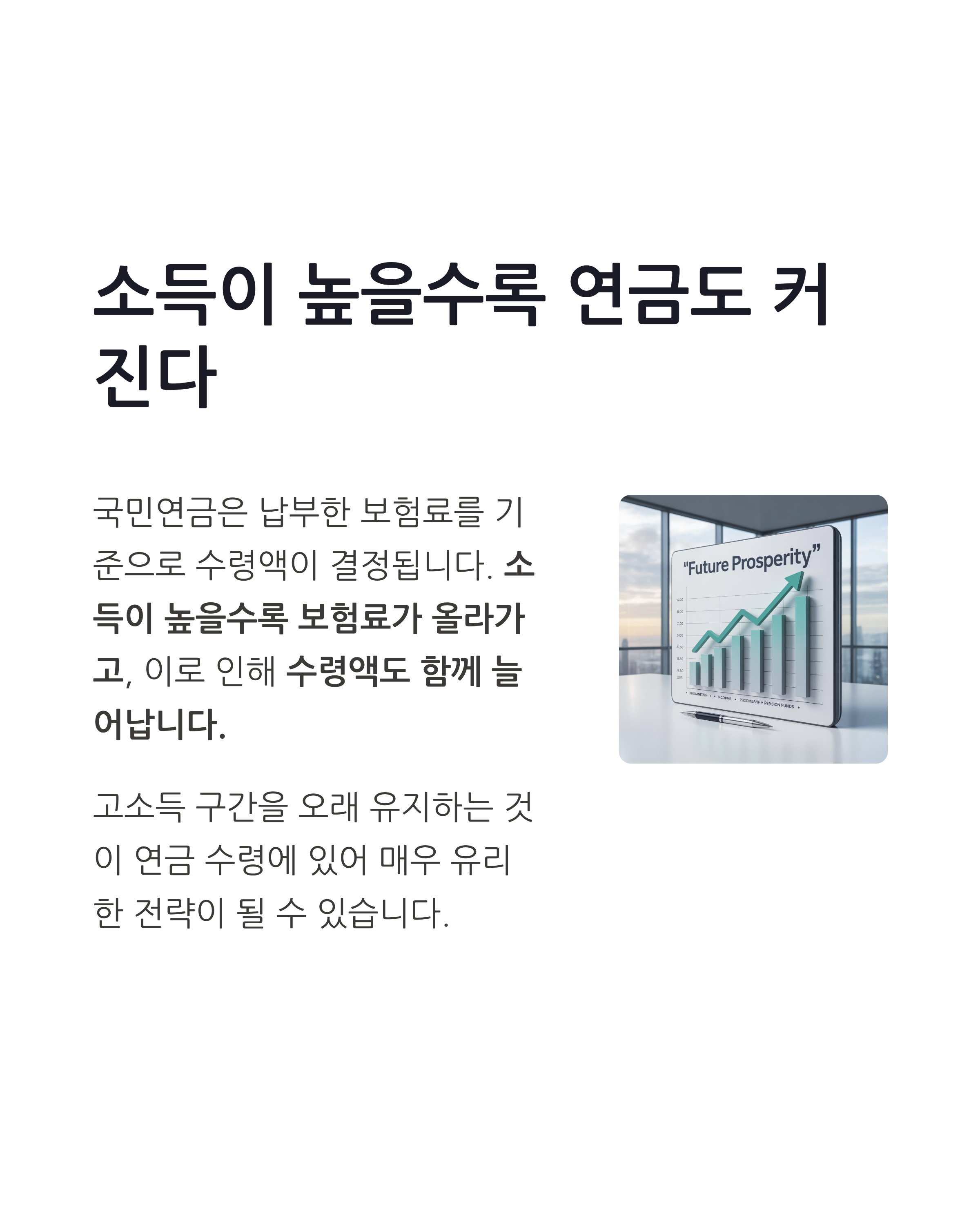 따라서 고소득 구간을 오래 유지하는 것이 연금 수령에 있어 매우 유리한 전략이 될 수 있습니다.