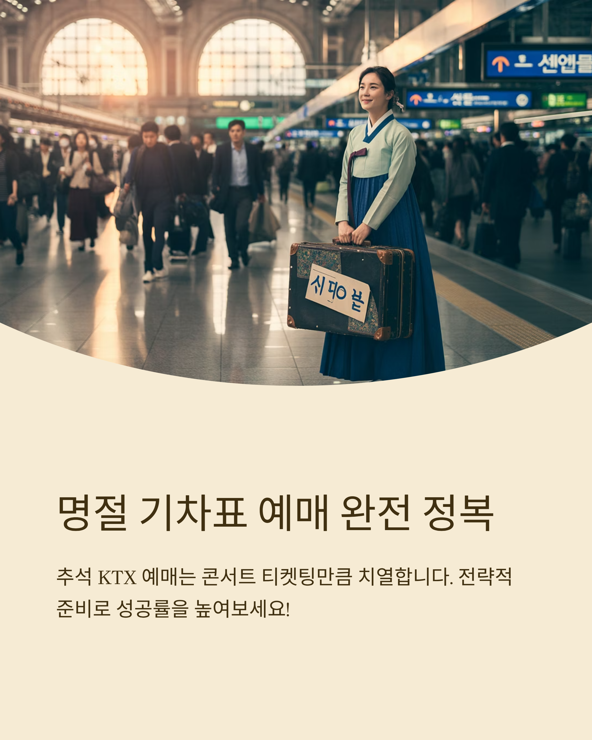 명절 기차표 예매는 마치 콘서트 티켓팅과도 같습니다. 특히 추석 KTX 예매는 경쟁이 매우 치열한데요. 준비가 덜 돼 있으면 원하는 시간대는 물론이고, 좌석 하나도 건지기 어렵습니다. 하지만 일정과 전략만 잘 알고 있다면 예매 성공률을 꽤 끌어올릴 수 있어요. 아래 지침에 따라 순서대로 준비하고 실행해 보세요.