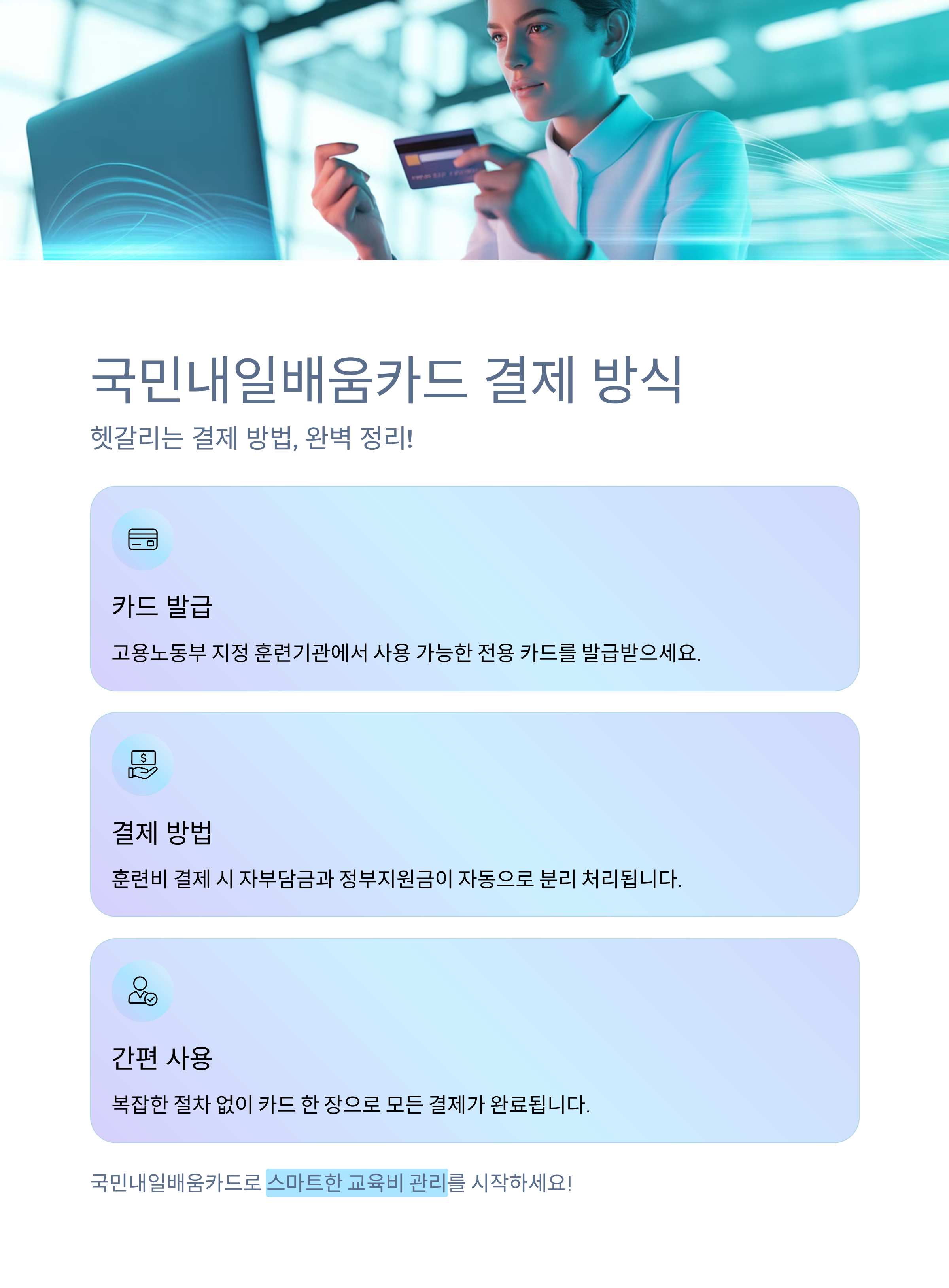 국민내일배움카드를 처음 접하신 분들이 가장 자주 묻는 질문 중 하나는 바로 결제 방식입니다.