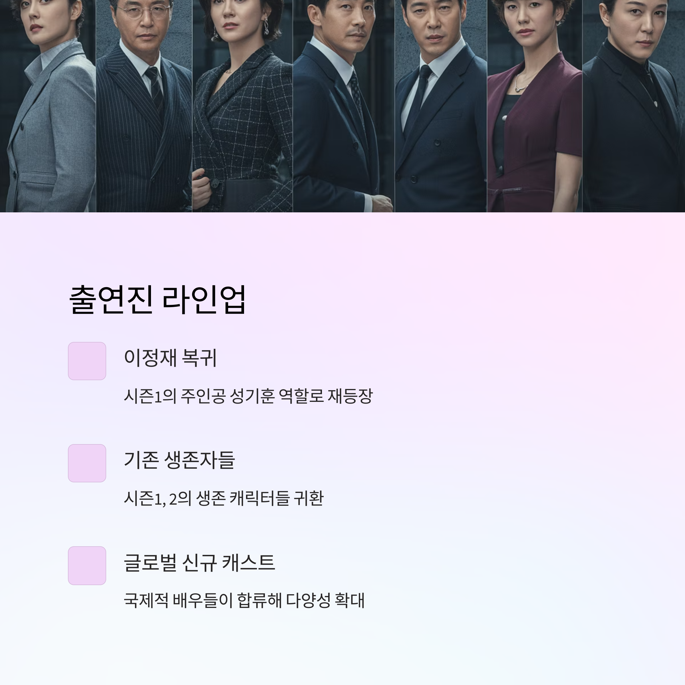| 주요 출연진 | 이정재, 위하준 외에 새로운 글로벌 캐스트 등장 |