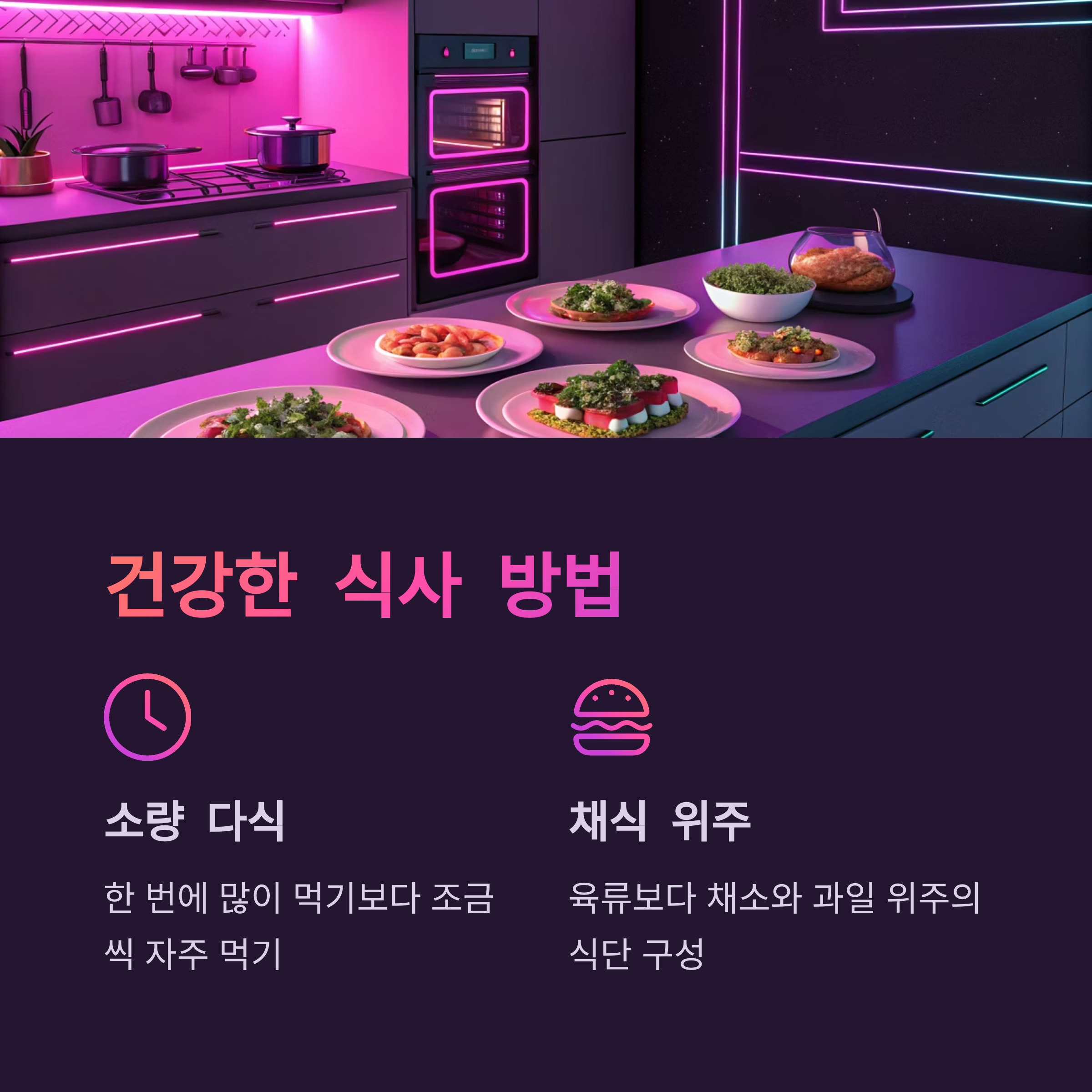 A: 채식 위주가 좋지만 단백질 보충도 중요합니다. 두부, 생선, 계란 등을 적절히 섞어야 합니다. - Q: 하루 식사량은 어떻게 조절해야 할까요?