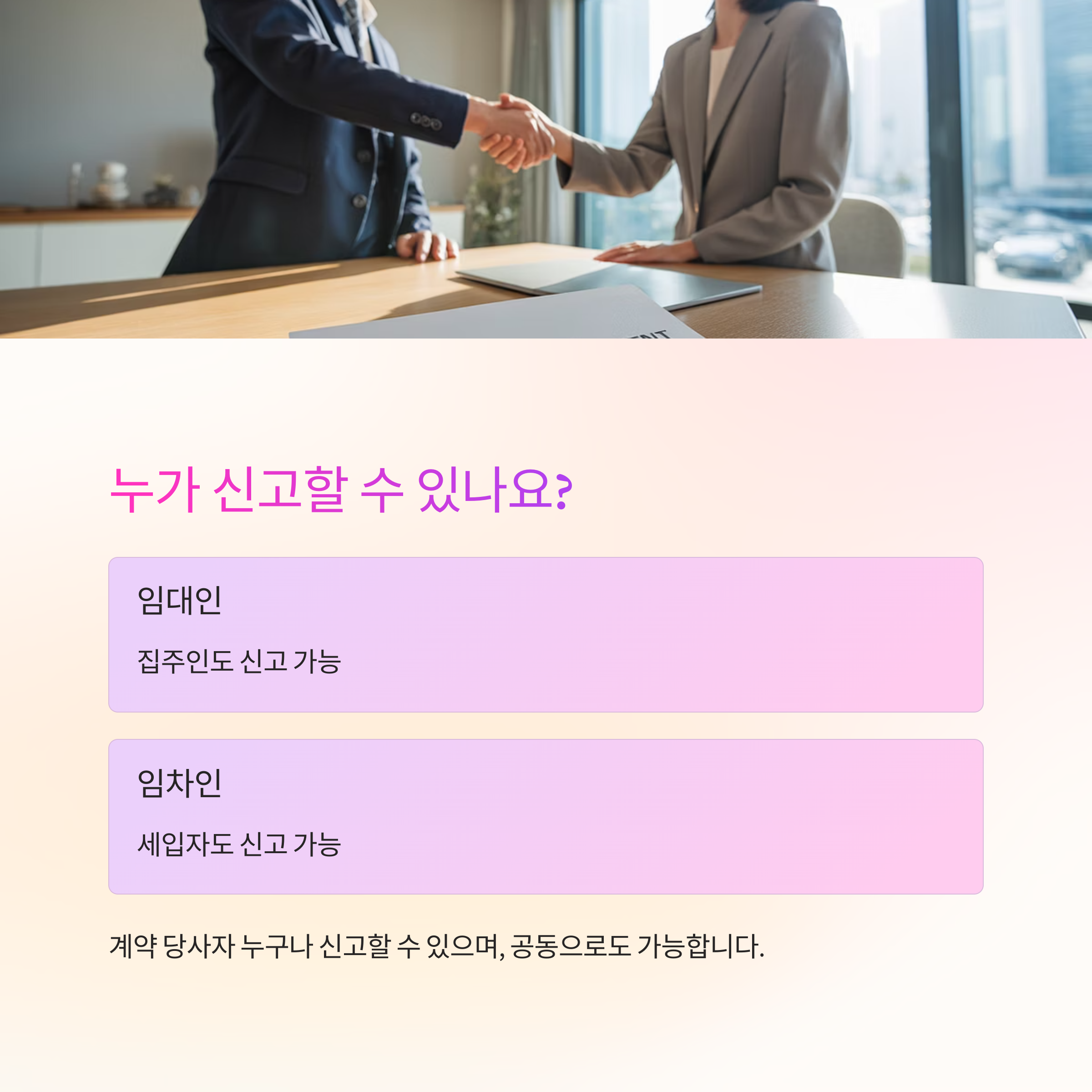 | 신고 대상 조건 | 보증금 6천만 원 초과 또는 월세 30만 원 초과 시 해당됩니다. |
