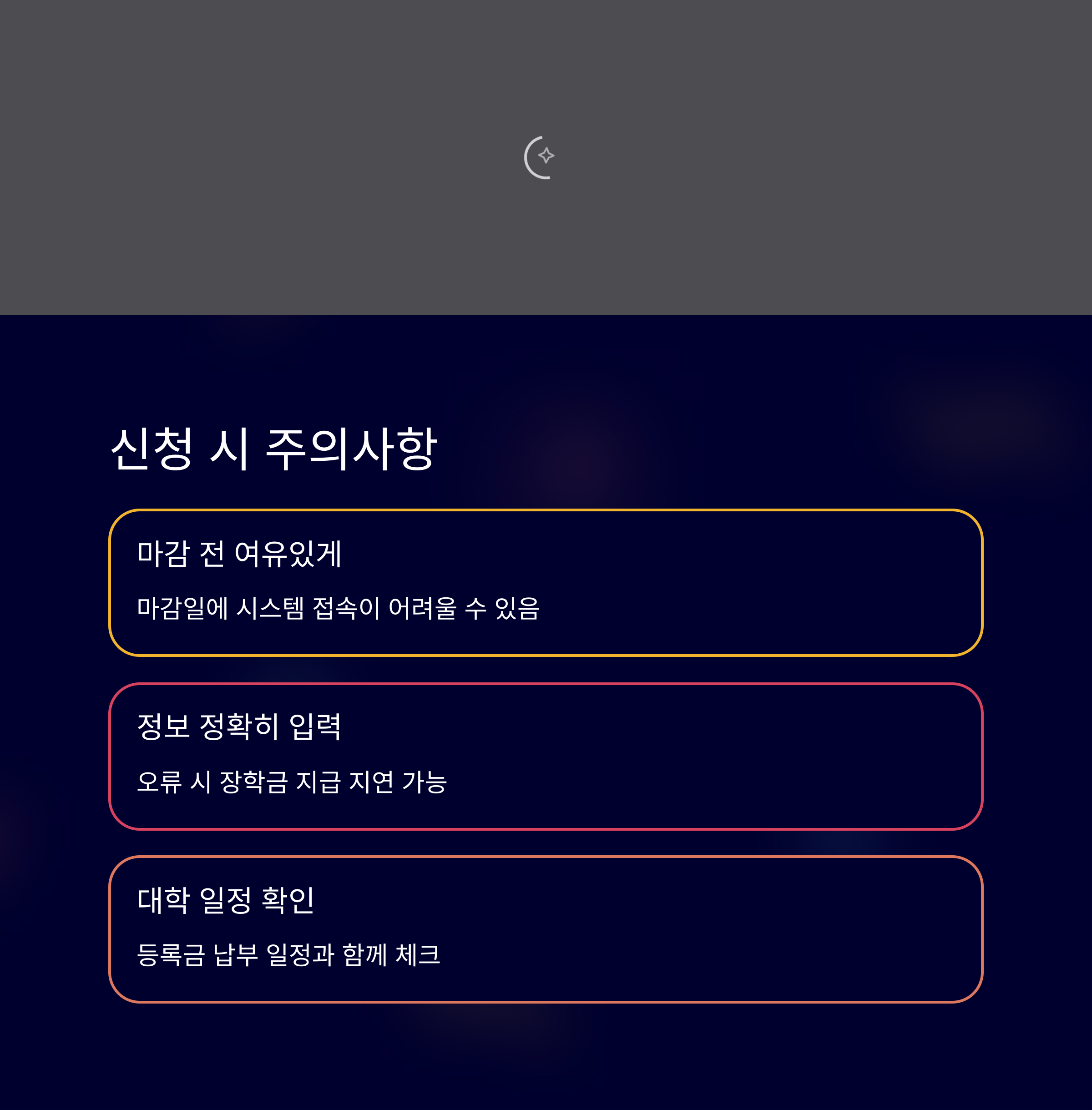| 대학별 등록금 일정과도 연계됨 | 공동인증서 필수, 서류 사전 준비 권장 | 마감일 전 여유 있게 신청해야 안전 |